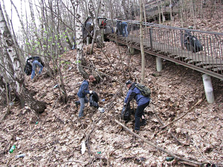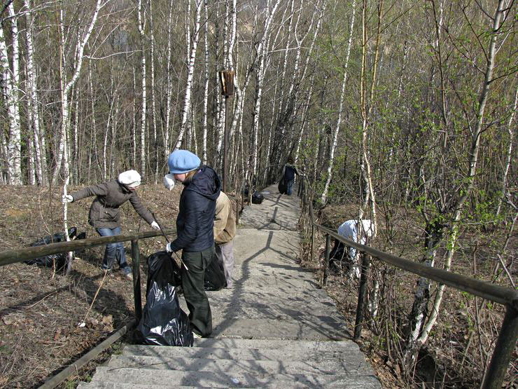 Ветреная и холодная погода не помешала акропольцам Нижнего Новгорода 24 апреля принять участие в экологической акции совместно с прихожанами православной церкви «Преображение». Церковь расположена недалеко от берега Волги, у подножия высокого холма. Из города к церкви ведёт длинная лестница — она и была объектом нашего внимания и заботы. После приведения в порядок лестницы, наши силы сосредоточились на наведении чистоты вокруг родника, находящегося чуть ниже церкви. Вскоре и там воцарилась гармония и красота!